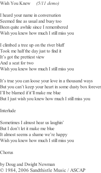 Doug Newman Music - page two Doug Newman Albums Doug Newman Song Lyrics Doug Newman : Calendar Doug Newman : Contact Doug Newman photos Doug Newman : Press, Reviews Doug Newman: News Guestbook Doug Newman Music - page three (audio is loading) Doug Newman Album Cut Take by my brother Dwight Google play © Doug Newman iTunes
