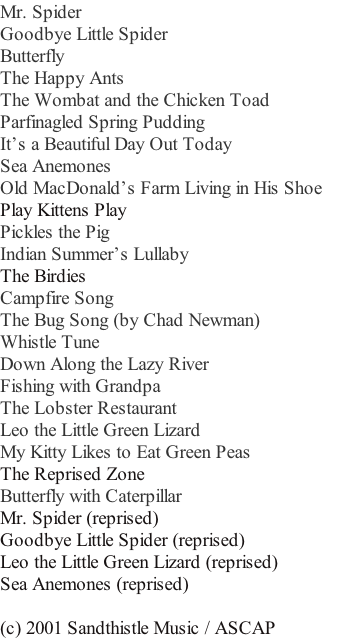 Doug Newman Music - page one Doug Newman Music - page two Doug Newman Albums Doug Newman Song Lyrics Doug Newman : Calendar Doug Newman : Contact Doug Newman photos Doug Newman : Press, Reviews Doug Newman: News Guestbook Doug Newman Music - page three Doug Newman Links (c) Doug Newman Bugs and Critters         by Doug Newman brown trout Google Play Amazon iTunes more fish sculptures Bears                  (with Mandolin) 17 Bears - Doug Newman (c) Sandthistle Music - ASCAP 11-04-12 128k clip from Sierra Skies.mp3 available at Amazon, Google Play                        and  iTunes CD now available at CreateSpace Gibson lg3 guitar - Doug Newman youtube Barnyard News from “Critters and Bugs” barnyard news - doug newman 315 ed 128k.mp3 The Giant Tree (Climbing the Tree) by Bo Newman (written by my Dad - performed by me) The Giant Tree by Bo Newman (performed by Doug Newman) 320k.mp3 The Bug Song by Chad Newman The Bug Song by Chad Newman (performing) 128k.mp3 Up and at “Em 8/14 up and at em by doug newman 814.mp3 (performed by Chad Newman  -early 80’s) performed by Bo Newman ‘05 - two takes Colorado Springs