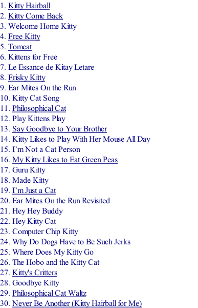 Kitty with Mic - Doug Newman The Cat Album, Cat Songs The Cat Album     by Doug Newman song clips: Doug Newman Music - page two Doug Newman Albums Doug Newman Song Lyrics Doug Newman : Calendar Doug Newman : Contact Doug Newman photos Doug Newman : Press, Reviews Doug Newman: News Guestbook Doug Newman Music - page three Doug Newman Links nice Seattle Weekly mention Kitty with Her Mouse - Doug Newman The Cat Album, Cat Songs Kitty with her mouse Kitty with mic Pokie and Rusty more photos Google Play Press: amazon Doug Newman Music - page one (the original ‘01 album) The Cat Album ‘14 (The Cat Album ‘14  (director’s cut) song list) © Doug Newman The Cat Album ‘14 (director’s cut) CD at CreateSpace CD at CreateSpace $14.99 CD at CreateSpace Kitty Philosophical Cat Waltz (new “The Cat Album ‘14” song) My Kitty Likes to Eat Green Peas  (original ‘01 album clip) me 2000 in the midst of kitten and cat mayhem me 2000 me ‘10 approx. me ‘09 The Fab Four - Rusty, Dusty, Clemintine and Pokie - Doug Newman The Cat Album, Cat Songs, Kitten Songs The Fab Four -            Rusty, Dusty, Clementine and Pokie